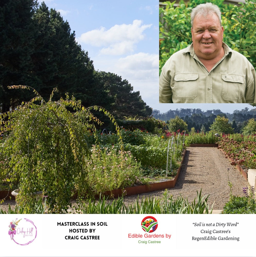 Join us as we host Craig Castree for a soil Masterclass! Whether you're a seasoned gardener or just getting started, this session will leave you empowered to grow change — one patch of living soil at a time. Craig Castree is an award-winning Horticulturist of 45 years’ experience at growing his own food organically and creating edible gardens. He has worked extensively in both wholesale and retail nurseries in Victoria. He has also worked in fruit tree orchards and is the current Vice President of the Werribee Park Heritage Orchard at Werribee Park Mansion. He is an educator who teaches others how to live a more sustainable, self-sufficient life in an urban setting. He is a regular on 3AW Radio and Southern FM on Molly's Blooming hour, where he speaks about the power of soil biology, the urgency of regenerating our food systems, and the simple actions anyone can take to grow change. A published author of six books, Craig has dedicated his life to helping others live more self-sufficient, sustainable lives — starting right in their own backyards. He teaches practical, soil-first methods that empower people to grow real food in harmony with nature, no matter where they live. From wholesale nurseries to orchard management, Craig’s roots in horticulture run deep.